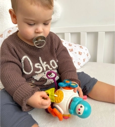Forgó űrhajós, pörgettyű, csúszó és nyomható elemek tartják fenn a gyermek figyelmét, és támogatják a természetes, játékos tanulást.