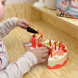 A Woopie születésnapi torta ideális játék mind kis házigazdáknak, mind házigazdanőknek. A szett 40 különböző darabot tartalmaz, beleértve a gyertyát, amely világít a gomb megnyomása után. A gyerekek játszás közben fejleszthetik kreativitásukat és képzelőerejüket a torta önálló díszítésének lehetősége által nyújtva, gyertyákkal, nyuszidekorációkkal és gyümölcsökkel.