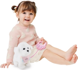 Ez a puha, ölelni való, 22 cm-es plüss kutyus élethű mozgásaival és hangjaival rengeteg örömet okoz a gyerekeknek. A vezérlővel ellátott kábel a nyakon lévő nyílásba csatlakozik, és egyszerűvé teszi a séta és az effektek irányítását. Az érintés, a taps és a gombok kombinációja révén a játék intuitív és szórakoztató.