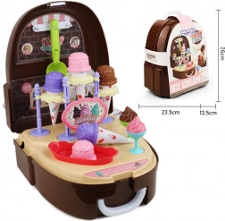 A kis cukrász mindig készen áll! Ez a bájos készlet hátizsák formájában nyitás után teljes fagylaltozóvá és mini bolttá alakul. A gyerekek gombócos fagyit tálalhatnak, megtölthetik a tölcséreket, és édes finomságokat árulhatnak barátoknak és szülőknek. Könnyű kialakításának köszönhetően egyszerűen elvihető a játszótérre, a nagyihoz vagy a nyaralásra.
