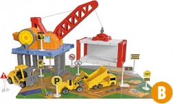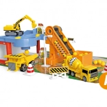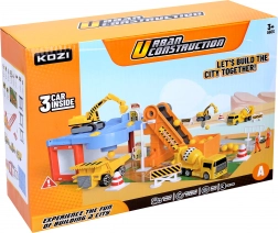 Építőipari játékgarázs remek játék kis építők számára, amely minden szükséges építőgépet tartalmaz több órányi szórakozáshoz.