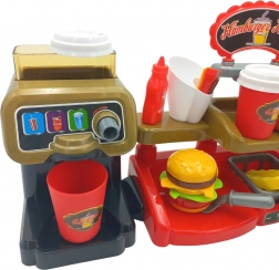 Ez az interaktív készlet lehetővé teszi a gyerekek számára, hogy megéljék az autentikus gyorsétkezdei munka érzését, ahol nemcsak ételeket szolgálhatnak fel, hanem használhatják a hanghatásokkal ellátott kasszát is. A gyerekek értékelni fogják a lehetőséget, hogy valódi vizet öntsenek az adagolóból, ami valósághűséget kölcsönöz a játéknak.