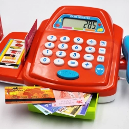 Valódi számológép, a szkenner hanghatásai, kihúzható pénzfiók