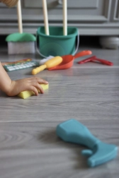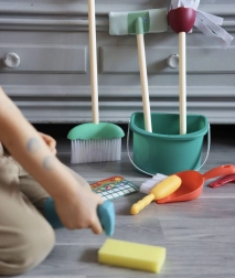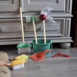 A Woopie takarítókészlet kiválóan realista mása a valódi eszközöknek a takarításhoz. A készlet tökéletesen alkalmazkodik a gyerekek kezeihez és támogatja a szerepjátékot, ami pozitívan befolyásolja a felelősségérzet fejlődését és a kötelességtudatot.