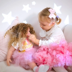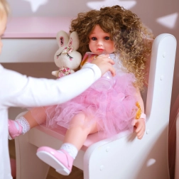 A ROYAL kollekció RAQUEL babája élethű megjelenésével nyűgöz le – finom szempillák, gyönyörű szemek és hosszú, fényes haj, amely egyenesen frizurakészítésre csábít. A test kellemesen puha és plüss, a fej és a végtagok puha szilikonból készültek a természetes tapintásért. Önállóan ül, és a levehető ruhácskákat mosógépben lehet mosni, így a gondozása egyszerű.