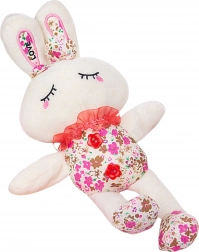 A csomagban cumisüveg, cumi, plüss nyuszi és pelenka található – minden, ami a teljes babázáshoz kell, otthon és útközben.