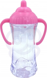 A csomag része egy rózsaszín cumisüveg, amelyet a baba a kezében tud tartani – remek a képzelet és a gondoskodás fejlesztésére.