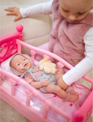 Ez a valósághű baba ideális 3 éves kortól azoknak a gyerekeknek, akik szeretnek a felnőttek világát utánozni. A mozgatható végtagoknak és a könnyen behelyezhető cuminak köszönhetően a mindennapi gondozási rituálékat is eljátszhatják, az etetéstől a lefektetésig. A minőségi kidolgozás hosszú élettartamot és biztonságos játékot garantál.