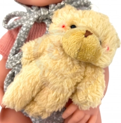 A készlet része egy puha plüss maci, amelyet a baba a kis kezében tarthat. Támogatja az érzelmi kötődést és a megnyugtató játékritusokat.