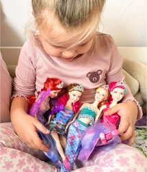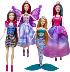 A készlet négy bűvös hercegnő babát tartalmaz egyedi ruhákkal és kiegészítőkkel, amelyek támogatják a gyermek képzeletét.