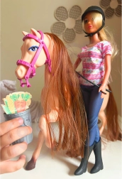 A babának és a lónak is hosszú, dús haja van, amely korlátlan lehetőséget nyújt frizurák és stílusok alkotására.