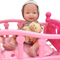 A világos rózsaszín dizájn díszes szívecskékkel vonzza a figyelmét minden kis hercegnőnek és babáiknak.