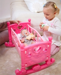 A ringató 40 cm hosszúságú és 19,5 cm szélességű babák számára ideális. Remek ajándékötlet minden gyermek számára, aki szeret gondoskodni babáiról!