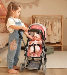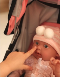 A karok és lábak könnyen különböző pózokba állíthatók. A gyerekek felöltöztethetik a babát, hordozhatják, babakocsiba tehetik és gondoskodó játékokat játszhatnak vele.