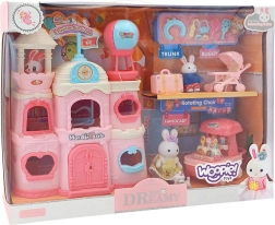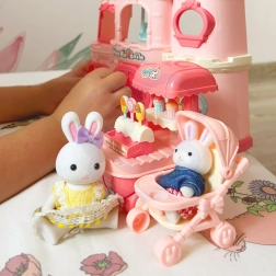 A gyerekek saját történeteket alkotnak a nyuszikkal, a kutyussal és a kiegészítőkkel, mint például a babakocsi vagy a fagylaltos kocsi – ideális a kreatív játékhoz.