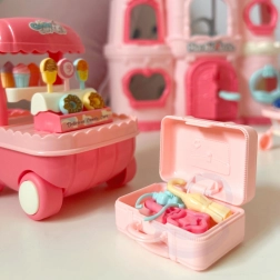 A csomagban nyuszi mama és kölyök, egy aranyos kutyus, rózsaszín babakocsi, fagylaltos kocsi finomságokkal, valamint praktikus apróságok, mint kulcsok, óra és fényképezőgép találhatók. A minőségi, biztonságos anyagok ideálisak a mindennapi használatra és a hosszú élettartamra.