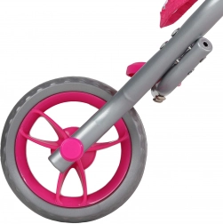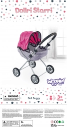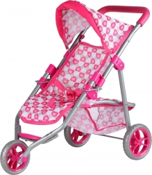 A Woopie márka könnyű és stabil, háromkerekű babakocsija rózsaszín, szívecskés dizájnjával és praktikus felszereltségével otthoni és szabadtéri játékhoz egyaránt ideális. Van benne összecsukható napellenző, biztonsági öv, puha habszivacs fogantyú és alsó kosár apróságoknak. A csendes habkerekeknek köszönhetően könnyen irányítható, játék után pedig gyorsan összecsukható, hogy helyet takarítson meg.