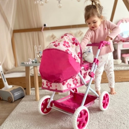Stílusos és funkcionális mély babakocsi a WOOPIE márkától, amely ideális kiegészítő minden kis babajáték-rajongónak! A babakocsi virágmintával és állítható fogantyúval rendelkezik, így „együtt nő” a gyermekkel. Csendes kerekei zökkenőmentes irányítást, stabil szerkezete pedig biztonságos játékot biztosít.