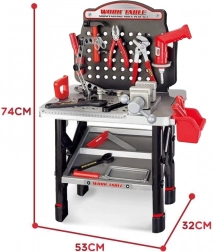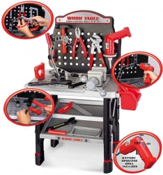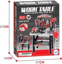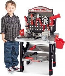 A műhely asztala úgy van tervezve, hogy megtanítsa a gyerekeket a szerszámok helyes használatára és működésük megértésére. Kiváló játék önálló és közös játékhoz szülőkkel vagy barátokkal.