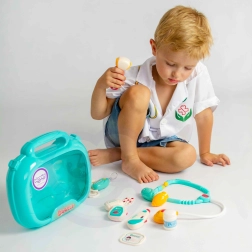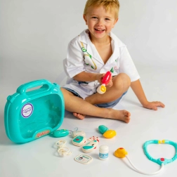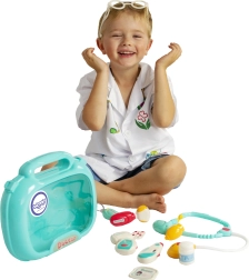 Mindez egy kényelmes bőröndben kap helyet fogantyúval, ami megkönnyíti a szállítást. A gyermek fejlesztheti képzeletét, és eljátszhatja az orvos vagy a páciens szerepét!