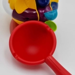 A játékszer interaktív módon vonja be a gyermeket, mivel a víz öntése közben a szemek mozognak, és a víz a pocakon átfolyik.