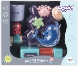 A szórakoztató WOOPIE vízijáték minden fürdést élménnyé varázsol. Öntse a vizet a felső tartályba, és figyelje, ahogy az áramlás áthalad a rákon, megforgatja a tengeri csillagot, beindítja a vízikereket a kis delfinnél, majd az oldalsó csapból kifolyik. A 3 tapadókorongnak köszönhetően stabilan rögzül a kádan vagy a csempén, és segíti a finommotorika, a koncentráció és a képzelet fejlődését. 18 hónapos kortól ajánlott.