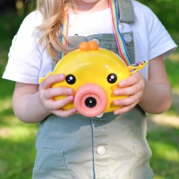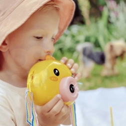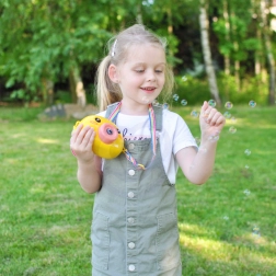 A WOOPIE buborékfújó csibe mozdony ideális játék 3 éves kortól. Az egyszerű On/Off gombbal való vezérlés, a bőséges buboréktermelés és a könnyű kialakítás tökéletes társsá teszik kertbe, játszótérre és gyerekzsúrokra.