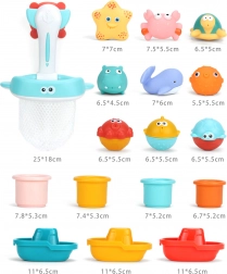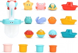 A fürdőjáték készlet különböző játékokat tartalmaz, amelyek végtelen szórakozást nyújtanak a kádban.