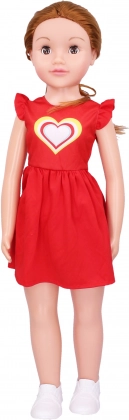 A 70 cm magas nagy sétáló baba valósághű megjelenésével és interaktív elemeivel örömet szerez a 3 évesnél idősebb gyerekeknek. Pislogó szemekkel rendelkezik, könnyű és könnyen kezelhető, valamint a minőségi anyagoknak köszönhetően tartós. A piros, szívecskés ruha aranyos megjelenést kölcsönöz, amit a gyerekek imádni fognak.