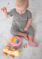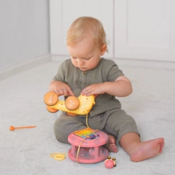 A WOOPIE csigával a gyerekek felfedezik a zene, a mozgás és az ok-okozat világát. Kopogtathatnak a színes xilofon billentyűin a kivehető szem-ütőkkel, húzhatják a csigát az erős zsinóron, vagy meglökhetik és figyelhetik, ahogy elindul. A ragyogó színek és a játékos design támogatják a vizuális észlelést és a hosszan tartó kreatív szórakozást.