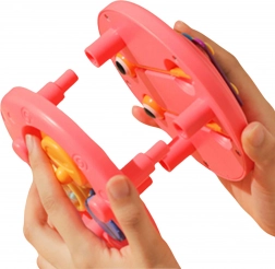 A kivehető „szemecskék” ütőként működnek. A gyerekek kopogtathatnak a színes billentyűkön, gyakorolhatják a ritmust, a hallást és a szem–kéz koordinációt.