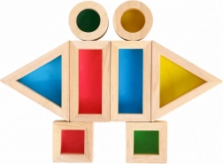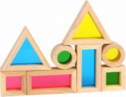 Az áttetsző színes betéteknek köszönhetően, a blokkok egymáshoz illesztésével összekapcsolódnak a színek, ami tanítja a gyermekeket a színek felismerésére és kombinálására. E blokkok egymásra rakása és építése támogatja a készségek, mint a kreativitás és képzelet fejlődését.