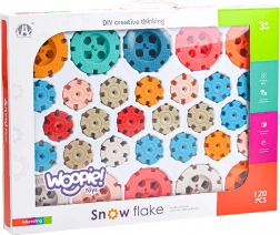 A Woopie Hópehely Építőjáték egy nagyszerű játék, amely lenyűgöző módon fejleszti a gyermekek képzelőerejét és logikai gondolkodását. Az egyedi designnak és a hópelyhek nyitott nyílásainak köszönhetően a darabok nemcsak merőlegesen, hanem szögben is kapcsolhatók, ami növeli a kreatív határértéket.
