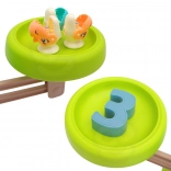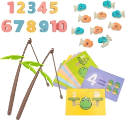 Két horgászbot és színes figurák teszik a tanulást szórakoztató ügyességi játékká, amely fejleszti a fogást, a türelmet és a szem–kéz koordinációt.