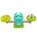 Az 1–10-ig terjedő számosúlyok megfelelnek a dínó figurák számának. A gyerekek látják, mikor van egyensúlyban a mérleg, és ösztönösen megértik az összeadást és kivonást.
