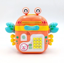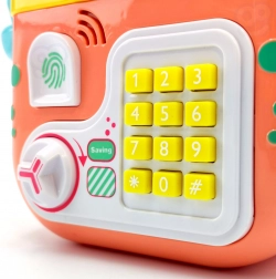 Ez a színes rák több mint egy persely – interaktív széf, persely és gyerek hátizsák egyben. A gyerekek elhelyezhetik benne a érméket, bankjegyeket és apró kincseket, megadhatják saját jelszavukat, és élvezhetik a valósághű elemeket, mint a gombos billentyűzet, a ujjlenyomat-olvasó imitációja és a forgó gomb a kinyitáshoz.