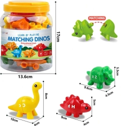 Ez az oktatási játék 3 éves kortól ajánlott, és 13 darab dinoszaurusz elemet tartalmaz, amelyeket betűk és színek szerint lehet összerakni. A játék nemcsak szórakoztató, hanem az ábécét is megtanítja a gyerekeknek és fejleszti készségeiket.