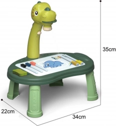 A dinoszaurusz alakú projektor közvetlenül az asztalra vetíti a képeket, így a gyerekek könnyedén átrajzolhatják. 3 lemezen összesen 24 sablon áll rendelkezésre a végtelen alkotáshoz.