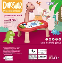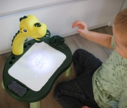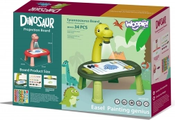 Változtassa a rajztanulást játékká! A WOOPIE dinoszaurusz projektoros asztalka kényelmes asztali rajzolást tesz lehetővé: a gyerekek a vetített motívumokat könnyen átrajzolhatják. A 3 cserélhető lemeznek köszönhetően összesen 24 sablon áll rendelkezésre, amelyek fejlesztik a kreativitást, a finommotorikát, a logikus gondolkodást és a művészi készségeket. A szárazon törölhető felület szivaccsal egyszerűen tisztítható, így mindig készen áll az újabb színes kalandokra.