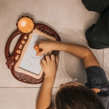 A praktikus fogantyúnak köszönhetően a tábla könnyen hordozható utazáshoz és óvodába is, a kihajtható lábak pedig kényelmes asztali írást biztosítanak. A csomag tartalmaz egy mágneses tollat és 4 pecsétet, amelyek alkotásra ösztönzik a gyerekeket és fejlesztik finommotorikájukat.