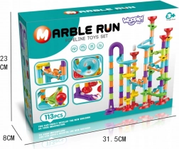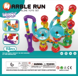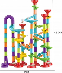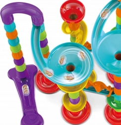 A minőségi műanyag elemek könnyen illeszkednek és stabilan tartanak. A kb. 10 mm átmérőjű golyók egyenletesen haladnak át az átlátszó és színes elemeken. Az összeszerelt pálya kompakt méretű, így a kisebb gyerekszobákban is elfér.