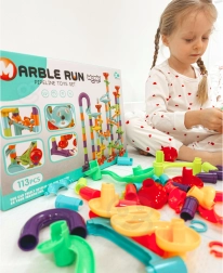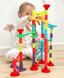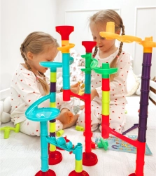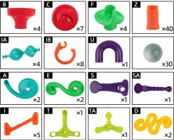 Különféle csövek, kanyarok, spirálok, tölcsérek és oszlopok segítségével mindig új és szórakoztató golyópályát építhet. Építsen a képes útmutató alapján, vagy alkosson egyedi, ötletes pályákat.