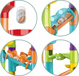 Állítson össze egyedi pályákat, kövesse a süvítő golyókat, és fedezze fel a gravitáció és a sebesség törvényszerűségeit. A variálható készlet lehetővé teszi, hogy a képes útmutató szerint építsen, vagy saját konstrukciókat alkosson rámpákkal, hidakkal, spirálokkal és tölcsérekkel. Minden futam más, és a gyerekeket tervezésre és kísérletezésre ösztönzi.