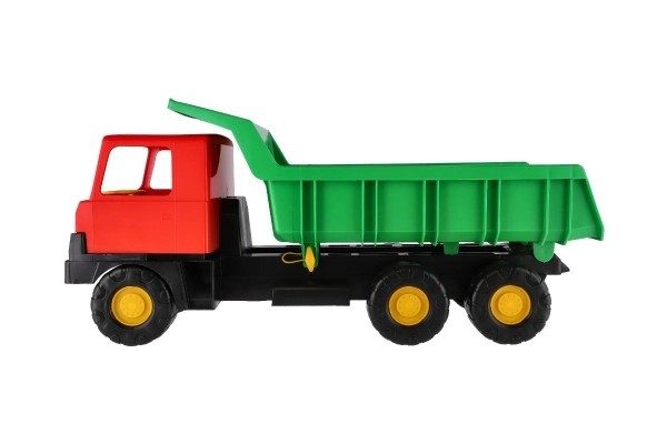 A közkedvelt Tatra 815 örök klasszikus. Robusztus műanyag kivitel, funkcionális billenőplató és a piros fülke–zöld plató mutatós színösszeállítása teszi ideális játékká játszótérre és kertbe. A gyerekek homokot, kavicsokat vagy játékokat szállíthatnak, így fejlesztve fantáziájukat és finommotorikájukat.