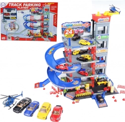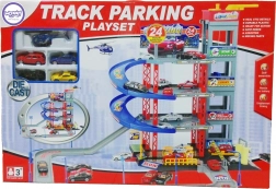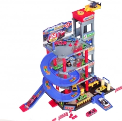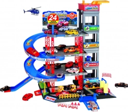 A doboz mindent tartalmaz az azonnali játékhoz: 4 db fém kisautó, helikopter, közlekedési táblák, bóják, felhajtóelemek, lift és matricák a valósághű környezet megteremtéséhez. A tartós műanyag szerkezet könnyű, stabil és alkalmas a mindennapos játékra.