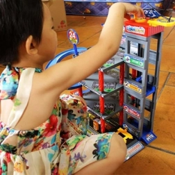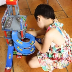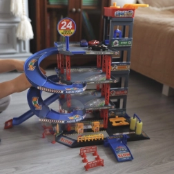 Hosszú, kanyargós lehajtók teszik lehetővé az autók gyors és egyenletes közlekedését a szintek között. Remek kombinációja a sebességnek, ügyességnek és szórakozásnak a kis versenyzők számára.