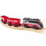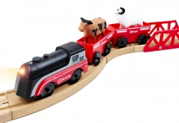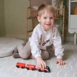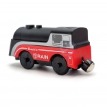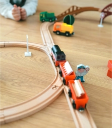 A készlet mágneses kapcsolódást használ a vagonoknál a gyors és intuitív összekapcsoláshoz. A mozdonyt egy darab AAA elem működteti (nem tartozék), menet közben fény gyullad ki, és egyenletesen halad, mint egy igazi vonat. A szabványos nyomtávnak köszönhetően kompatibilis a legtöbb fa sínrendszerrel (sín szélessége kb. 4 cm, tengelyke szélessége kb. 2,5 cm) – remek kiegészítője az IKEA, Brio és más készleteknek.