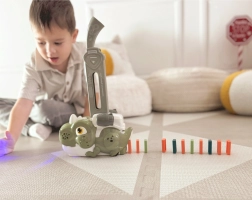 Fedezd fel a dominópályák varázsát a bájos zöld dinoszaurusszal, amely „kifújja” a kockákat tökéletes sorba. Elég megtölteni a tartályt, megnyomni a gombot, és figyelni, ahogy a játék automatikusan lerakja a dominót a padlón. A fény- és hangeffektek még szórakoztatóbbá teszik a játékot, és újabb kísérletekre ösztönzik a gyerekeket.