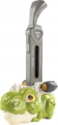 Töltsd meg a tartályt, indítsd el a járgányt, és a dinoszaurusz erőfeszítés nélkül egyenletes, hosszú pályába rakja a színes kockákat.