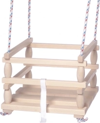 Ez a fa hintaszék kifejezetten a legkisebb gyerekek számára készült, akik már tudnak egyedül ülni. A robusztus konstrukció és a biztonsági korlát biztonságos és kényelmes hintázást biztosít. A hintaszék otthon és kültéren egyaránt használható.